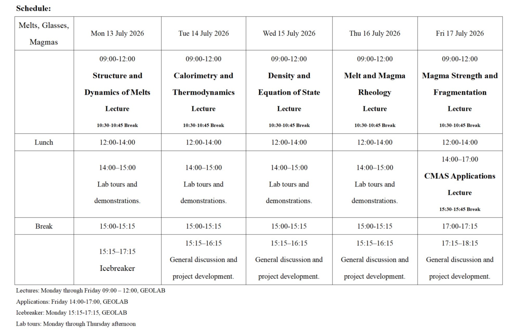 Key Lecturers: Prof. Donald Dingwell, Prof. Wenjia Song